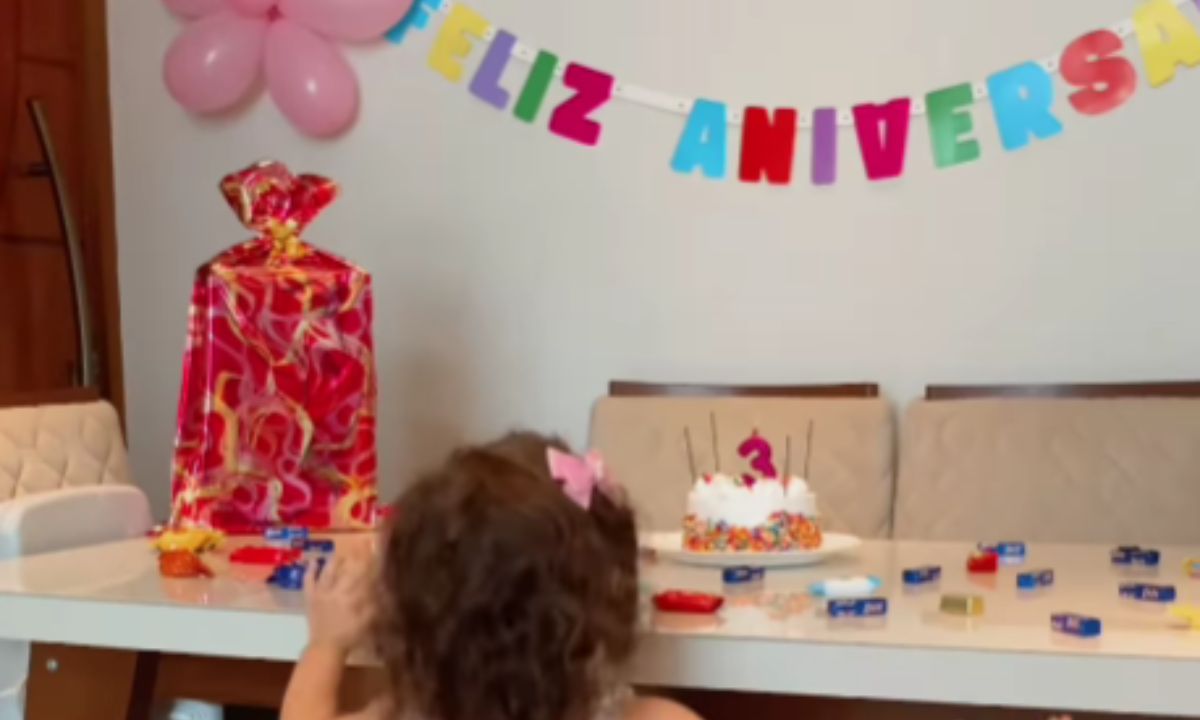 Uma celebração simples, marcada por afeto genuíno, tornou o aniversário de três anos de Catarina um dos vídeos mais comentados nas redes sociais. Na ocasião, a garotinha demonstrou alegria ao se aproximar de uma mesa decorada com doces, bolo, balões e um presente, expressando sua felicidade com pulos, gritos e um sorriso espontâneo que emocionou os espectadores.