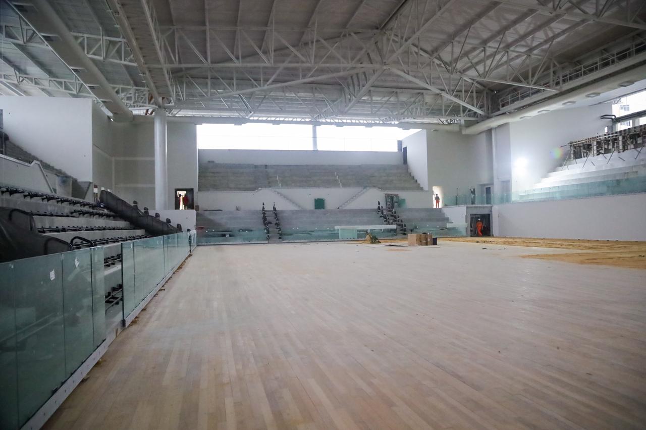 A construção avança em diversas frentes: a cobertura do ginásio já está pronta, enquanto os trabalhos internos envolvem a instalação de forros em gesso, pintura, colocação de pisos, dutos de ar-condicionado, guarda-corpos, corrimãos e assentos nas arquibancadas. No exterior, há progresso na instalação de brises e vidros para melhorar ventilação e iluminação, além de melhorias nas esquadrias e na área externa de circulação.