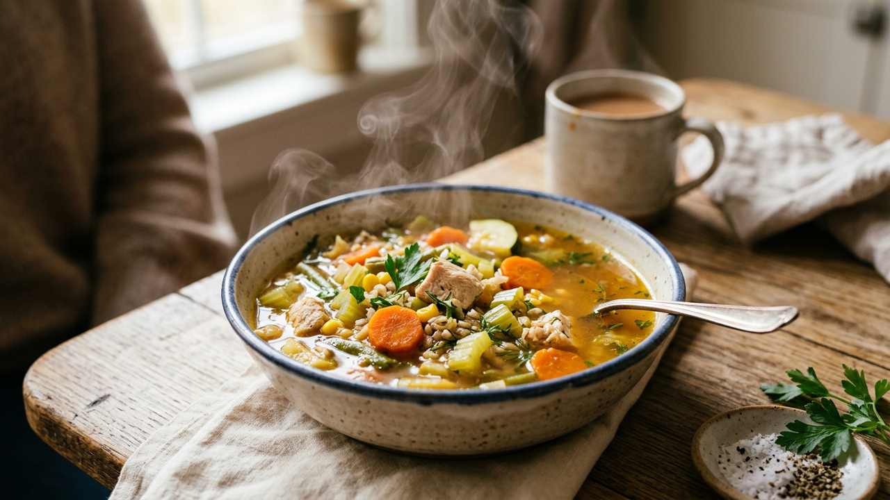 Durante episódios de resfriado e congestão, o consumo de caldos caseiros reforça o cuidado com o organismo. Essa preparação, composta por líquidos aquecidos, vegetais e temperos suaves, auxilia na hidratação, alivia o desconforto respiratório e fornece nutrientes essenciais, sendo de digestão leve e versátil para consumo em diferentes momentos do dia.