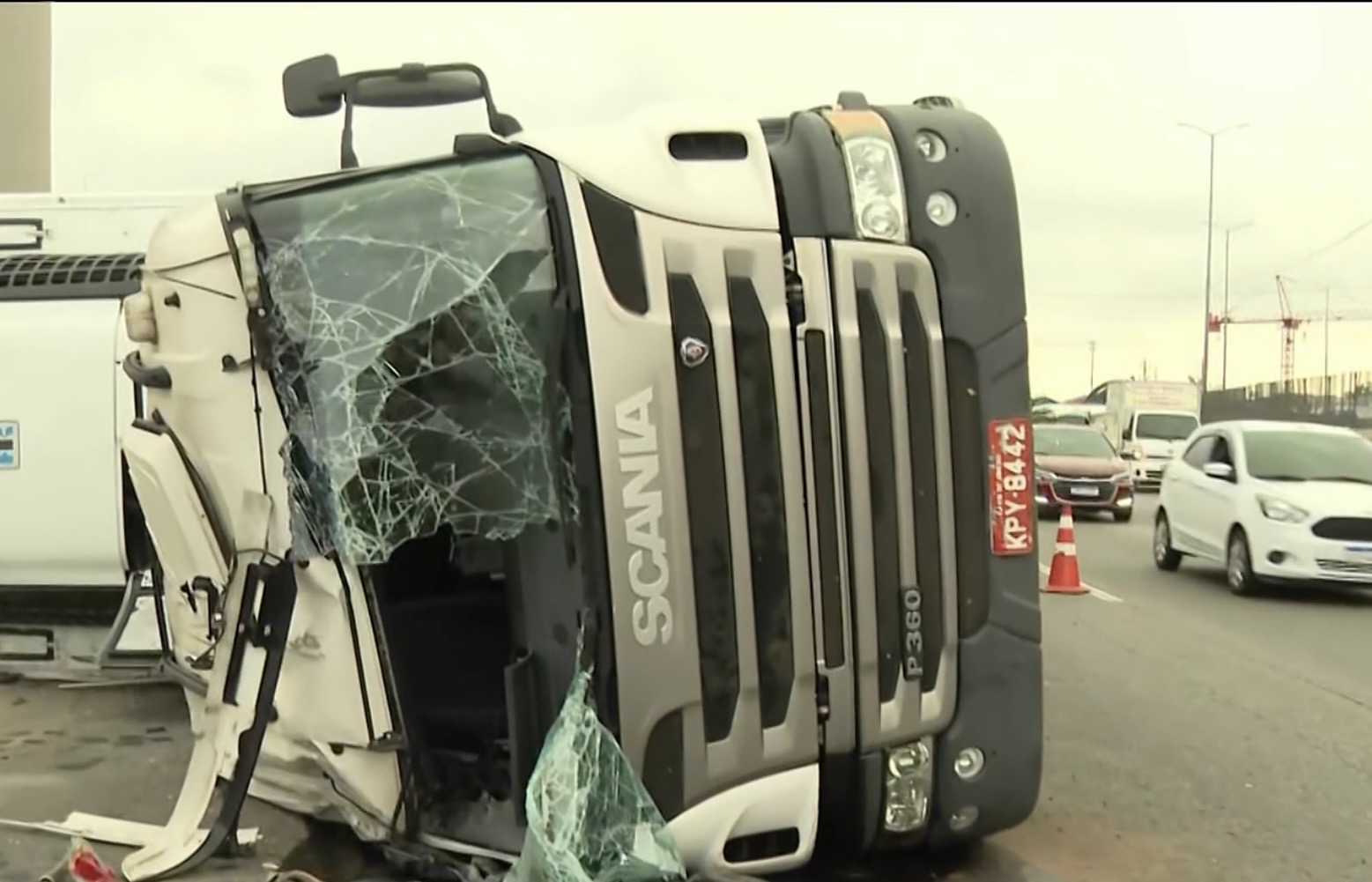 Na madrugada desta terça-feira, um caminhão carregado com aproximadamente 14 mil quilos de frutas sofreu um tombamento na BR-101, na altura da Avenida do Contorno, no bairro do Barreto, em Niterói. O acidente ocorreu por volta das 3h50, no trecho conhecido como comunidade Buraco do Boi, e resultou no bloqueio de duas faixas da via, gerando um congestionamento que atingiu cerca de 5 quilômetros de retenção, chegando até a região do Gradim, em São Gonçalo, por volta das 6h50.