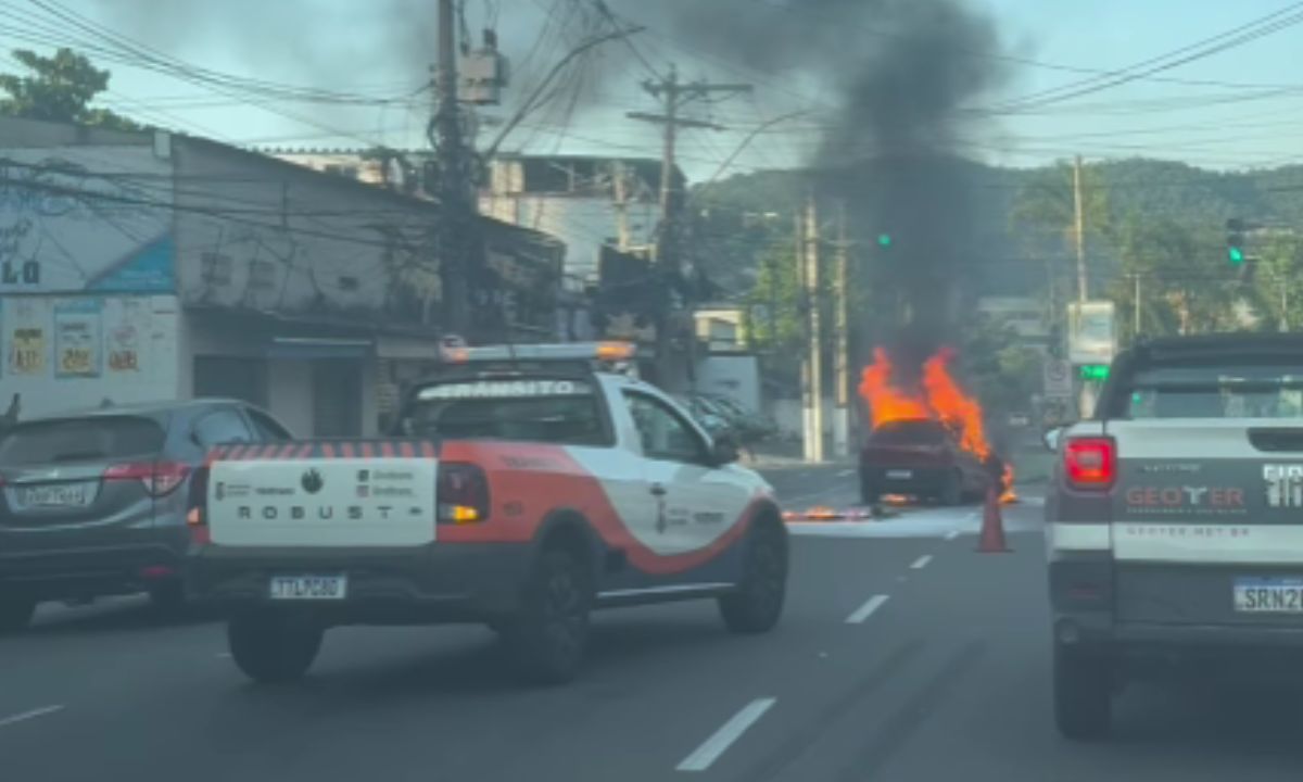 Carro pega fogo na Rua Reverendo Armando Ferreira e causa transtornos no trânsito em Niterói