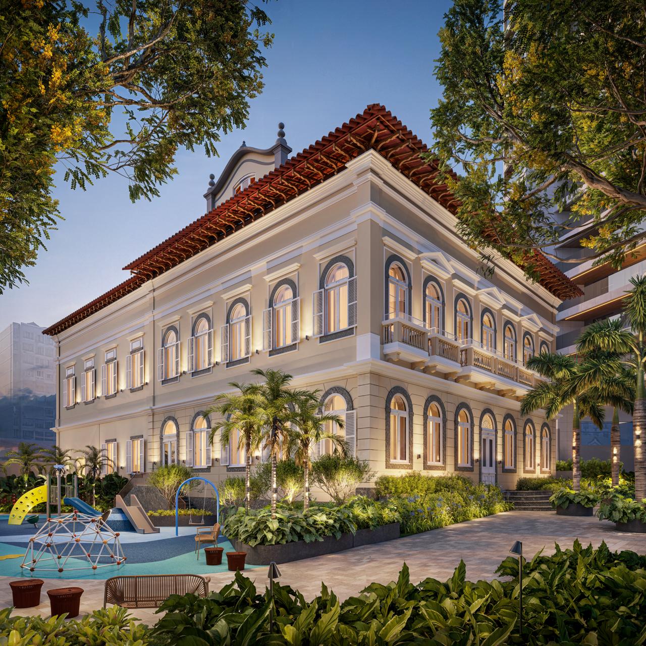 A estratégia do projeto é preservar a imponência do antigo palacete, projetando sua integração ao condomínio como elemento central do conjunto residencial. A fachada, voltada para a Rua Marques de Abrantes, será utilizada como espaço de uso comum aos moradores. A recuperação do casarão ficará a cargo do arquiteto Jorge Astorga, conhecido por trabalhos de restauração no Paço Imperial, enquanto o paisagismo será desenvolvido por Benedito Abbud. O restante do projeto, incluindo o nome do empreendimento, ainda é mantido sob sigilo, mas deve ser divulgado oficialmente em breve.