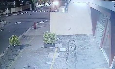 O episódio ocorreu na esquina das ruas Cinco de Julho e Presidente João Pessoa. Nas imagens, o veículo trafega pela rua quando uma motocicleta surge em alta velocidade. O motociclista tenta reduzir a velocidade, mas não consegue evitar a colisão com o carro, que, ao perder o controle, sobe na calçada e atinge a fachada de um edifício.