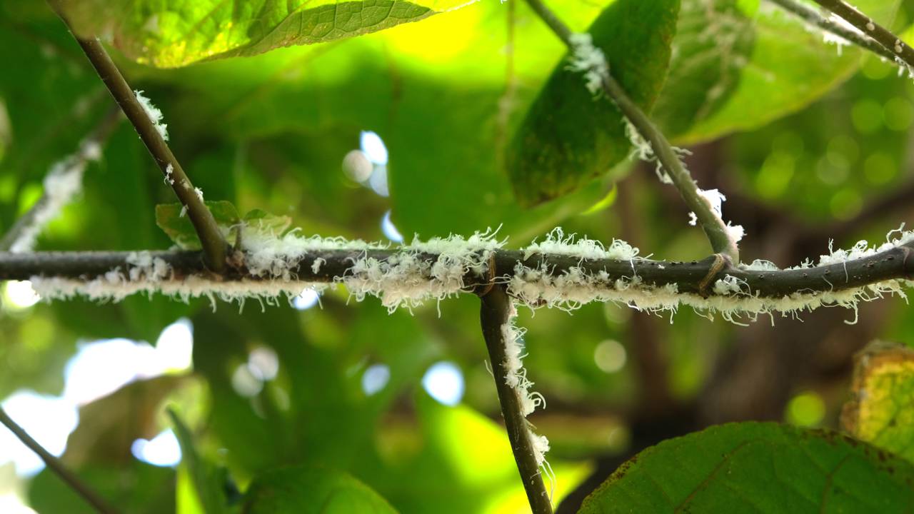 Para o manejo dessa praga, a identificação é fundamental. As cochonilhas aparecem como pequenos pontos de coloração variada, como branco, marrom ou amarelo, frequentemente com aparência de algodão ou crosta seca. Elas tendem a formar aglomerados na parte inferior das folhas, em pontos de bifurcação dos galhos ou ao longo do caule. Ao sugar a seiva, o inseto causa o enfraquecimento da planta, levando a folhas amareladas, queda precoce e crescimento desacelerado. Algumas espécies também excretam uma substância adoçada que favorece o desenvolvimento de fungos e aumenta a sujeira na superfície das folhas.