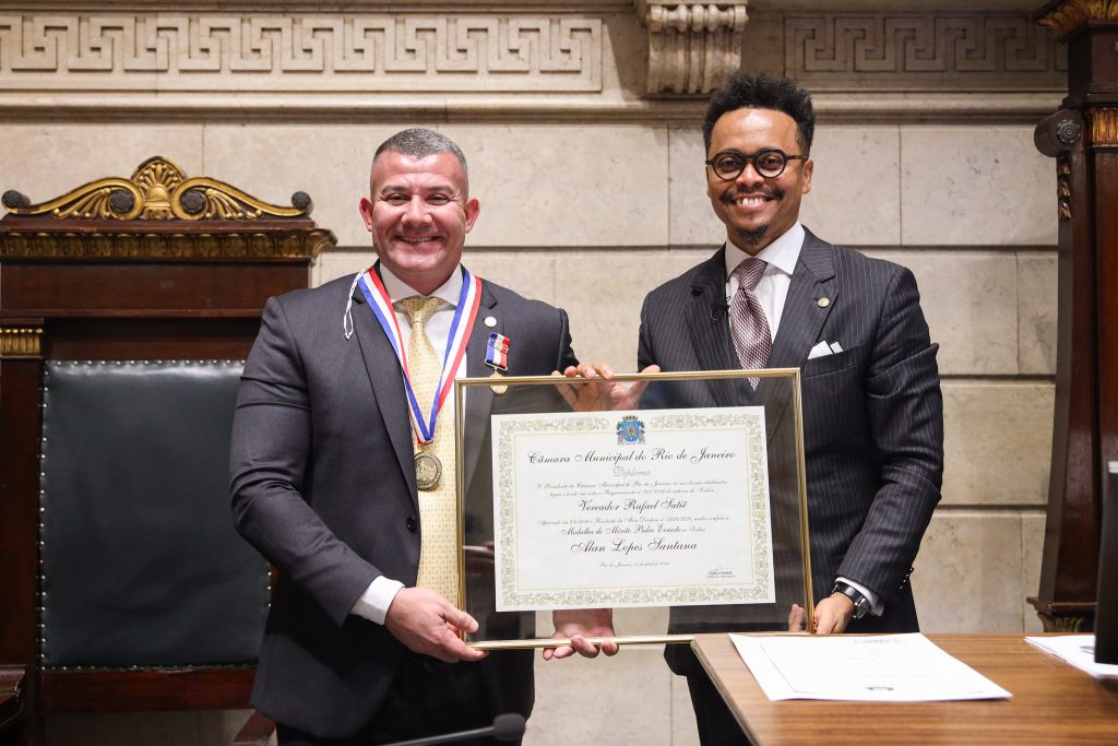 Na noite de quarta-feira (29), o deputado estadual Alan Lopes (PL) recebeu a Medalha Pedro Ernesto, uma das principais honrarias concedidas pela Câmara Municipal do Rio de Janeiro. A distinção, proposta pelo vereador Rafael Satiê (PL), foi entregue em uma cerimônia que reuniu parlamentares, lideranças religiosas, familiares e apoiadores políticos.