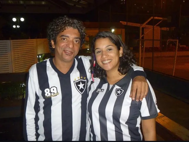 Foto: Paixão pelo Botafogo, retratada por Arthur Maia e pela filha, Júlia Maia, será mostrada no desfile oficial _ Crédito: Divulgação/Acervo da Família Maia)
