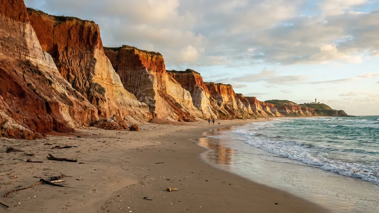 As falésias desta região pertencem à Formação Barreiras, uma unidade geológica que se estende do Amapá até o Rio de Janeiro, formada há entre 5 e 2,5 milhões de anos. Sua composição inclui óxido de ferro, cujas partículas, transportadas pela chuva, cimentam os sedimentos, conferindo às paredes uma coloração que varia do vermelho intenso ao branco. Essas estruturas, que podem atingir até 10 metros de altura na Ponta do Retiro, incluem ainda um farol da Marinha do Brasil.