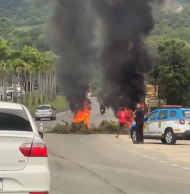 Moradores de Inoã, em Maricá, decidiram protestar contra a falta de energia na região, ateando fogo em galhos de árvores e bloqueando uma das pistas da RJ-106. Segundo relatos, algumas pessoas estão sem fornecimento desde sexta-feira (20/12). Um vídeo gravado por um motorista que passava pelo local mostra os galhos em chamas, com a presença de uma viatura do Batalhão de Polícia Rodoviária (BPRv) acompanhando a situação. O trânsito na região foi impactado devido ao protesto. A Polícia Militar apenas confirmou que equipes estão monitorando o protesto. Enquanto isso, a Enel Distribuição Rio enviou uma equipe para normalizar o fornecimento de energia na área.