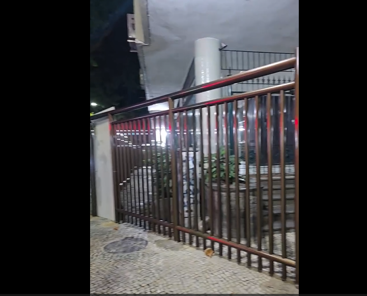 Na gravação, é possível observar uma grade instalada na fachada do prédio que, embora já possuísse medidas de segurança, foi ampliada para cobrir uma área significativa da calçada, reduzindo o espaço de circulação. Entre uma banca de jornal e a grade, restou apenas uma passagem estreita para pedestres, o que tem causado transtornos na circulação do local.