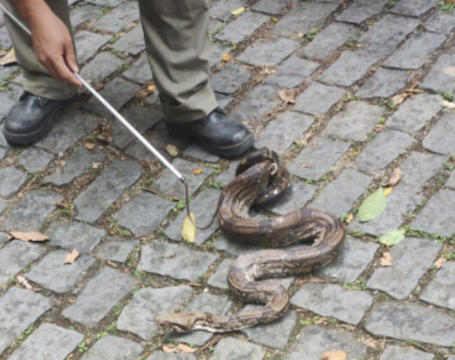 Uma terceira jiboia, com quase dois metros de comprimento, não pôde ser devolvida ao ambiente selvagem. Ela foi encaminhada ao Centro de Reabilitação de Animais Silvestres (CRAS), onde receberá cuidados especializados até estar apta para a reintegração à natureza. As jiboias, de porte considerável, não devem ser manipuladas ou abordadas fora de áreas protegidas. Especialistas recomendam que, ao avistá-las, seja acionado o órgão competente para garantir a segurança de todos.