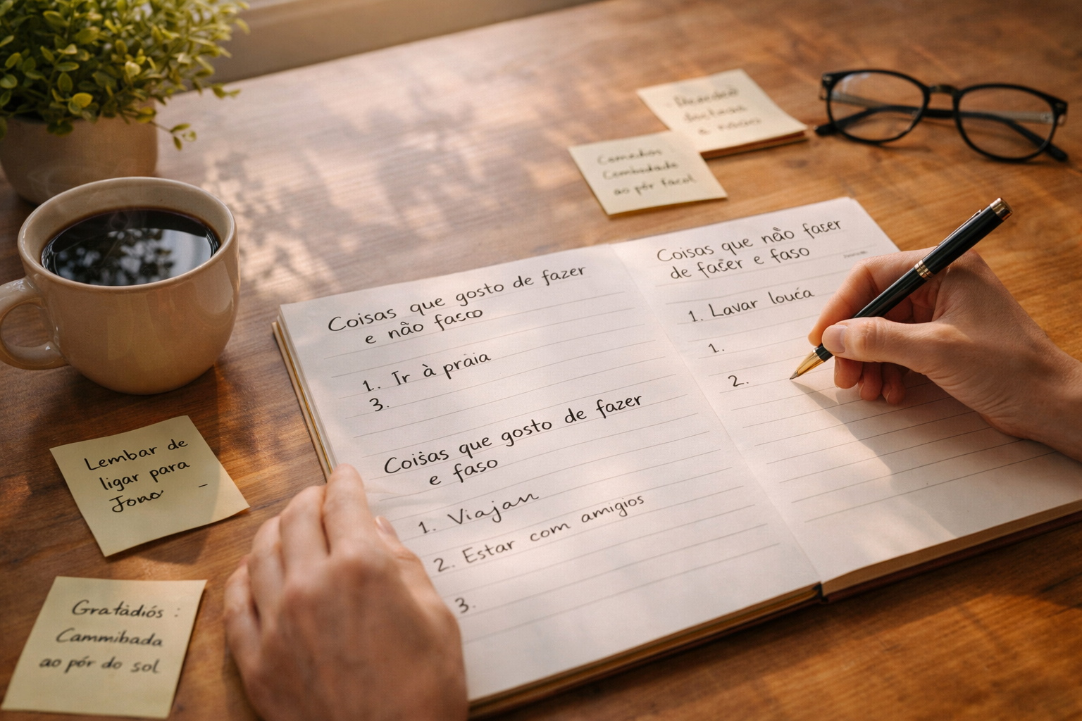 Listas terapêuticas promovem autocuidado e bem-estar ao organizar pensamentos e rotinas