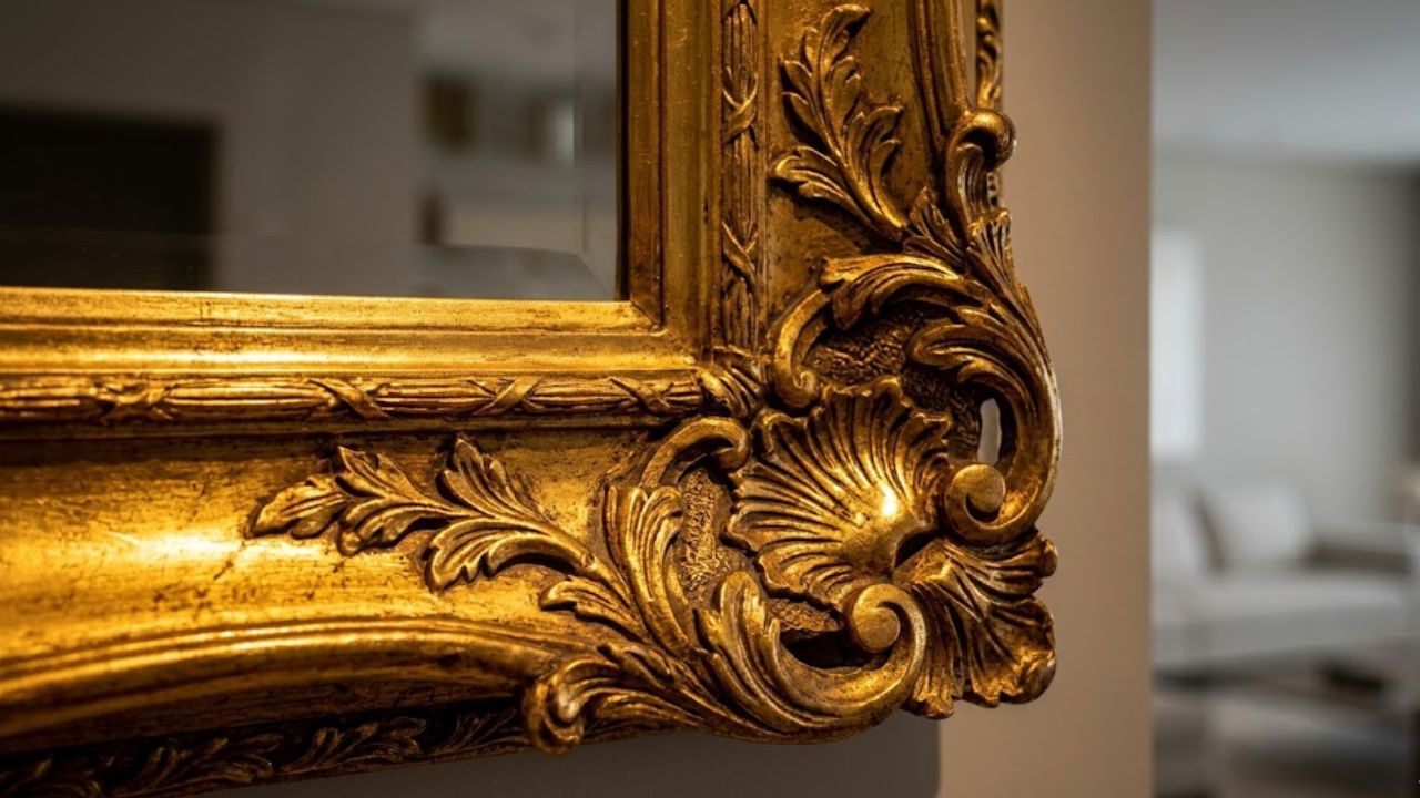 As molduras no estilo clássico costumam apresentar entalhes elaborados, desenhos em relevo e elementos que remetem ao barroco e rococó. Sua estrutura sólida é projetada para realçar obras de arte de grande porte, contribuindo para a composição estética, principalmente em ambientes de grande dimensão. A autenticidade dessas peças pode ser verificada por marcas de sobreposição da folha de ouro, chamadas de “emendas de ouro”, sinais de técnica artesanal aplicada camada por camada.
