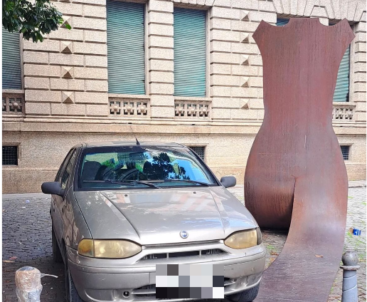 Um veículo foi estacionado irregularmente em uma escultura pública na Rua do Rosário, centro do Rio de Janeiro. O carro, uma Fiat Palio, permaneceu sobre parte da obra artística instalada na via, o que gerou repercussão nas redes sociais.