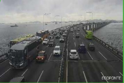 Na manhã desta quarta-feira (11), o trânsito na Ponte Rio–Niterói apresenta congestionamentos, sobretudo na direção Rio de Janeiro. Motoristas relataram lentidão na descida do Vão Central até a Grande Curva, com o tempo de espera chegando a cerca de 23 minutos por volta das 7h40, segundo informações da concessionária responsável pela via.