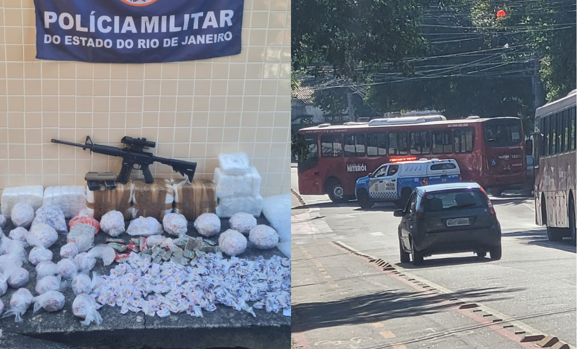 Durante a incursão policial, foram apreendidos um fuzil calibre 5,56 e uma quantidade significativa de drogas. A ocorrência foi registrada na 78ª Delegacia de Polícia (Fonseca), onde as investigações continuam.
