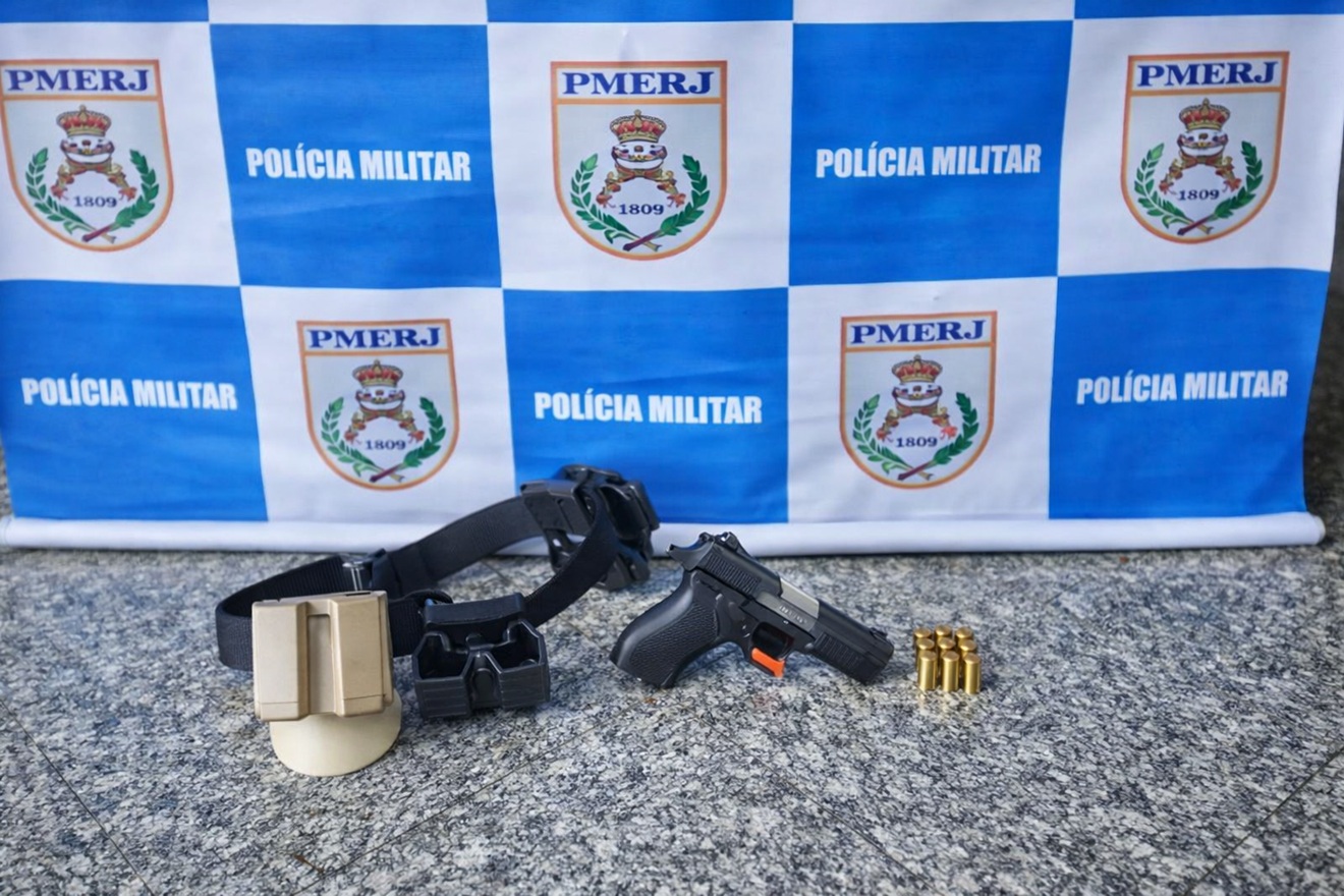 Após a contenção, o suspeito, de 30 anos, foi abordado e submetido a revista pessoal. Com ele, foi encontrada uma pistola Taurus PT 840, calibre .40, carregada com 12 munições intactas. O indivíduo possui antecedentes criminais por tráfico de drogas e foi conduzido à 78ª Delegacia de Polícia (Fonseca), onde foi autuado em flagrante por posse irregular de arma de fogo.