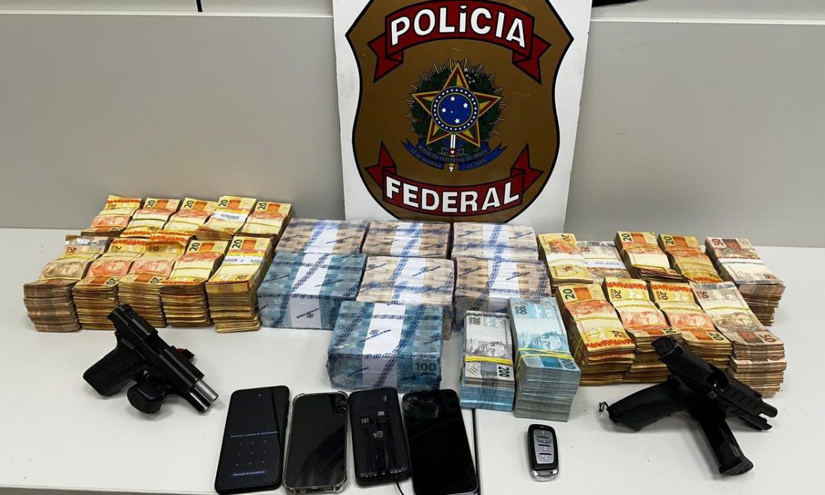 A Polícia Federal realizou na sexta-feira uma operação em Niterói, na Região Metropolitana do Rio, que resultou na prisão de cinco suspeitos, incluindo um policial militar em atividade. A ação também promoveu a apreensão de aproximadamente R$ 800 mil e de armas de fogo com munições, além de seis aparelhos celulares.