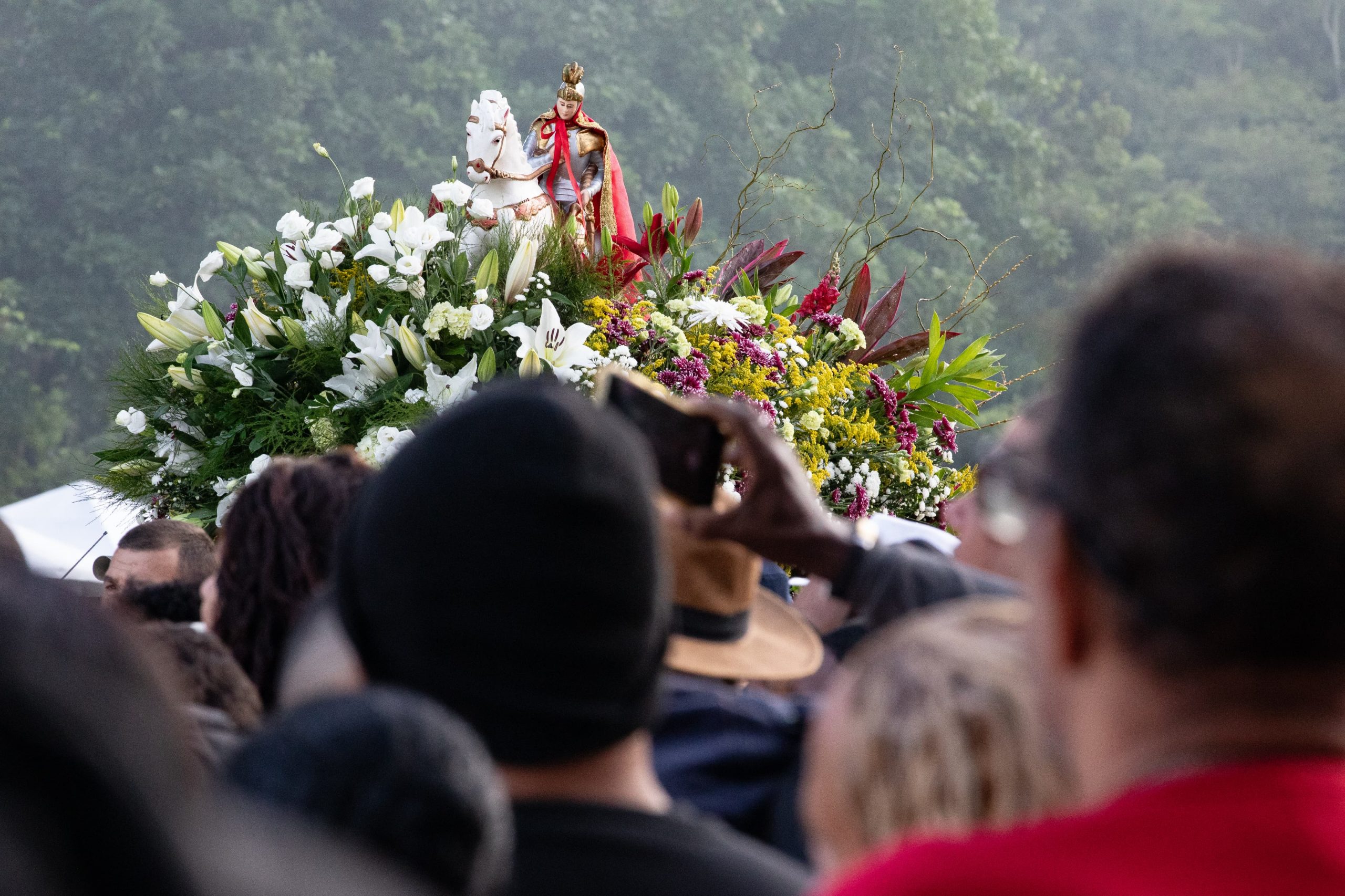 Parte dos participantes, como o morador Paulo Araújo, compartilhou sua história de devoção, reforçando a forte relação pessoal com São Jorge durante momentos de dificuldade.