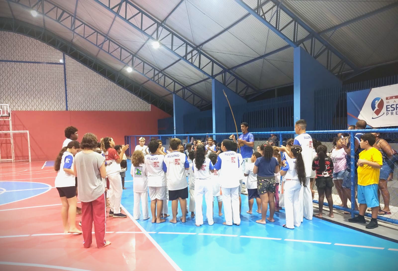 A Prefeitura de Maricá, por meio da Secretaria de Esportes, realiza aulas gratuitas de capoeira no âmbito do projeto Maricá Esporte Presente, que ocorre em espaços públicos do município. Uma das localidades contempladas é a Arena Itaipuaçu, onde o programa tem reunido participantes de diferentes idades, especialmente crianças, promovendo inclusão social e acesso a atividades culturais e esportivas.