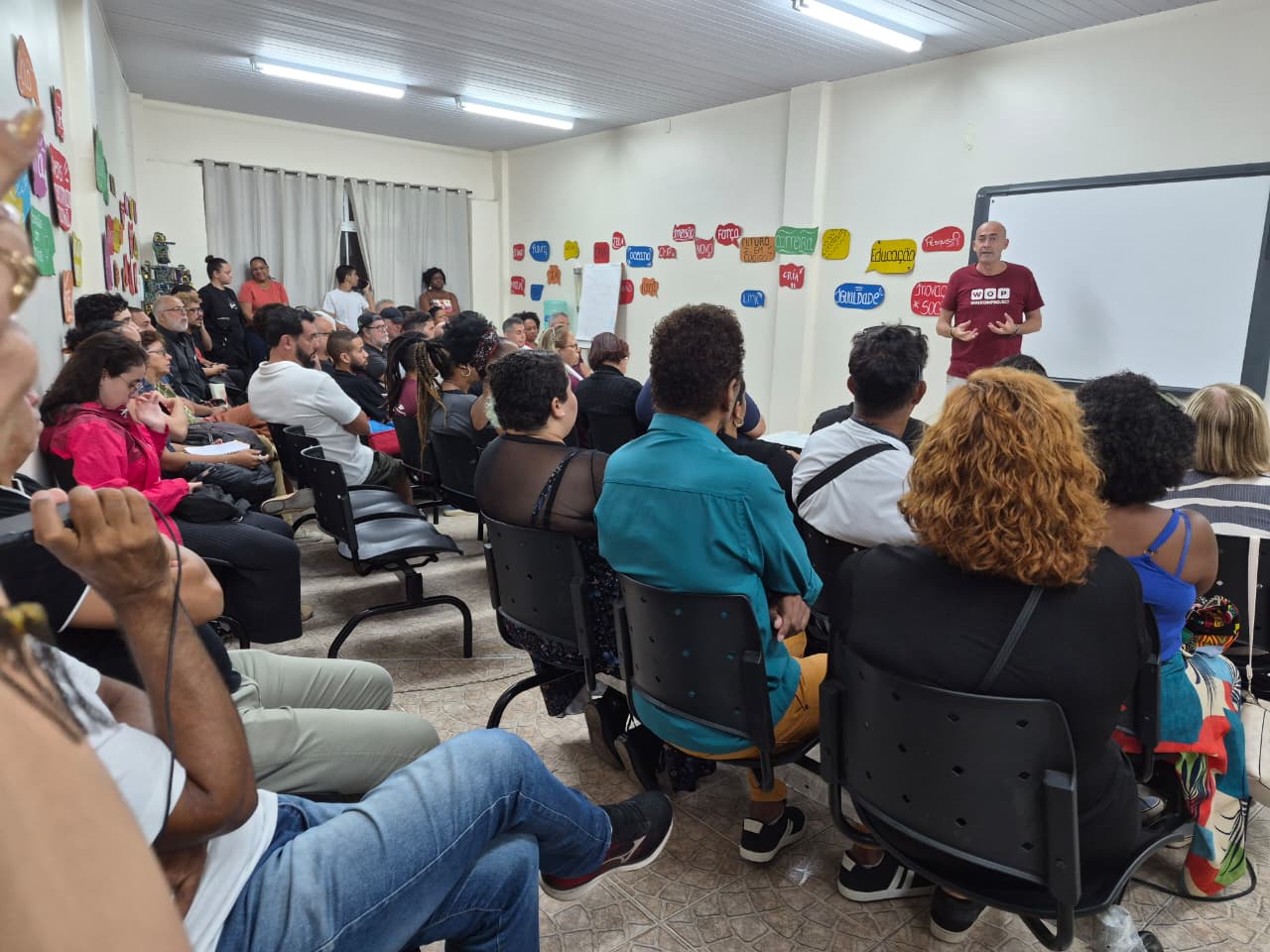 Durante a reunião, foram discutidos temas como processos de formalização da cooperativa, formas de gestão e estratégias de engajamento no mercado cultural, sempre enfatizando a necessidade de união entre artistas para o fortalecimento da categoria.