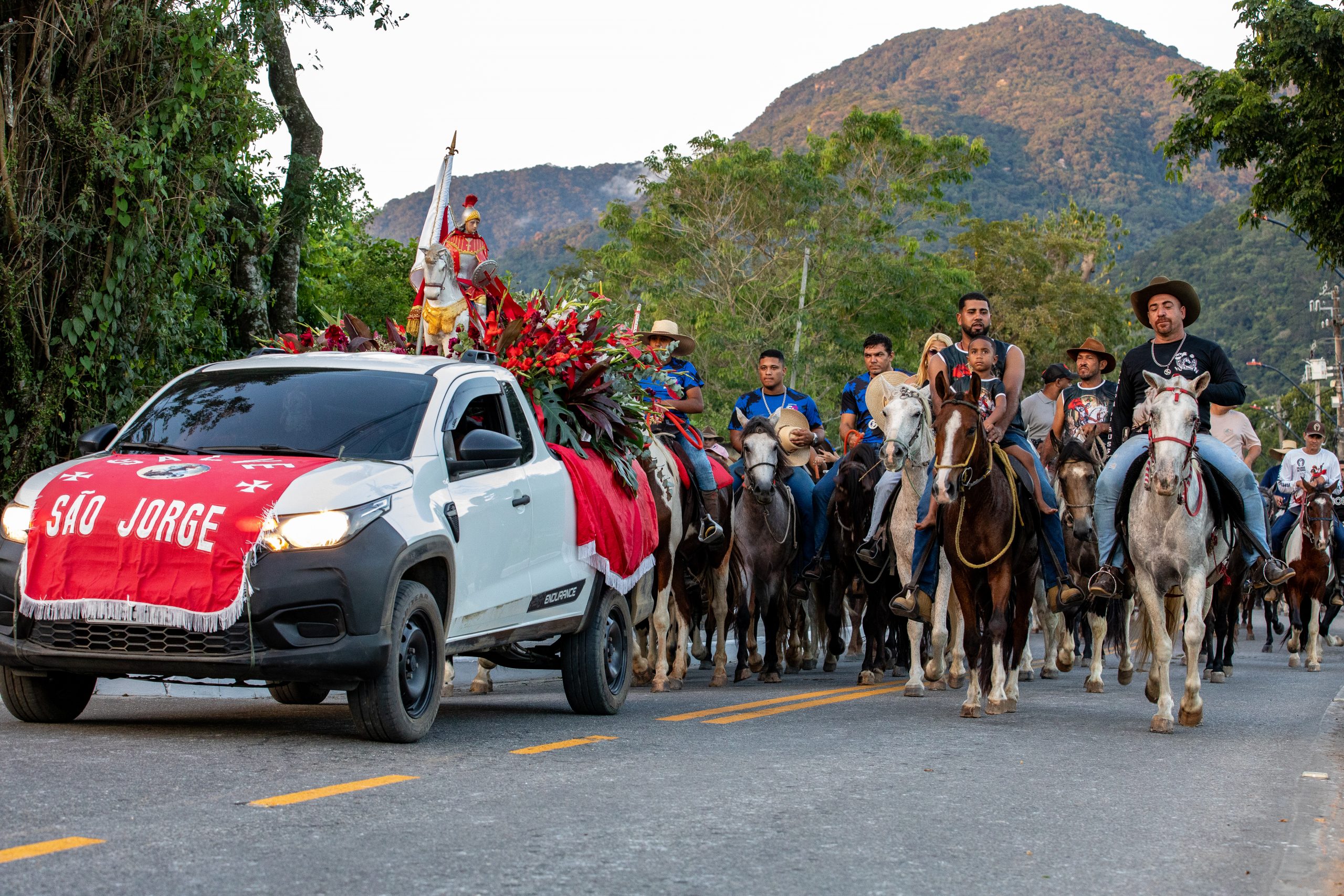 Ao longo do dia, o evento contou com atividades variadas, incluindo ações culturais, shows musicais e opções gastronômicas que atrairam um grande público. Um dos momentos de maior destaque foi a cavalgada, que mobilizou além de 100 cavaleiros e cavaleiras de diferentes regiões. O cortejo teve início no bairro Manoel Ribeiro, com apresentações culturais antes de chegar à Capela de São Jorge, no Espraiado, onde ocorreu a procissão. Participantes como Jair Coco, morador de Itaboraí e devoto há mais de 40 anos, relataram sua fé e a importância de homenagear o santo, especialmente após uma experiência pessoal marcada por recuperação de um acidente.