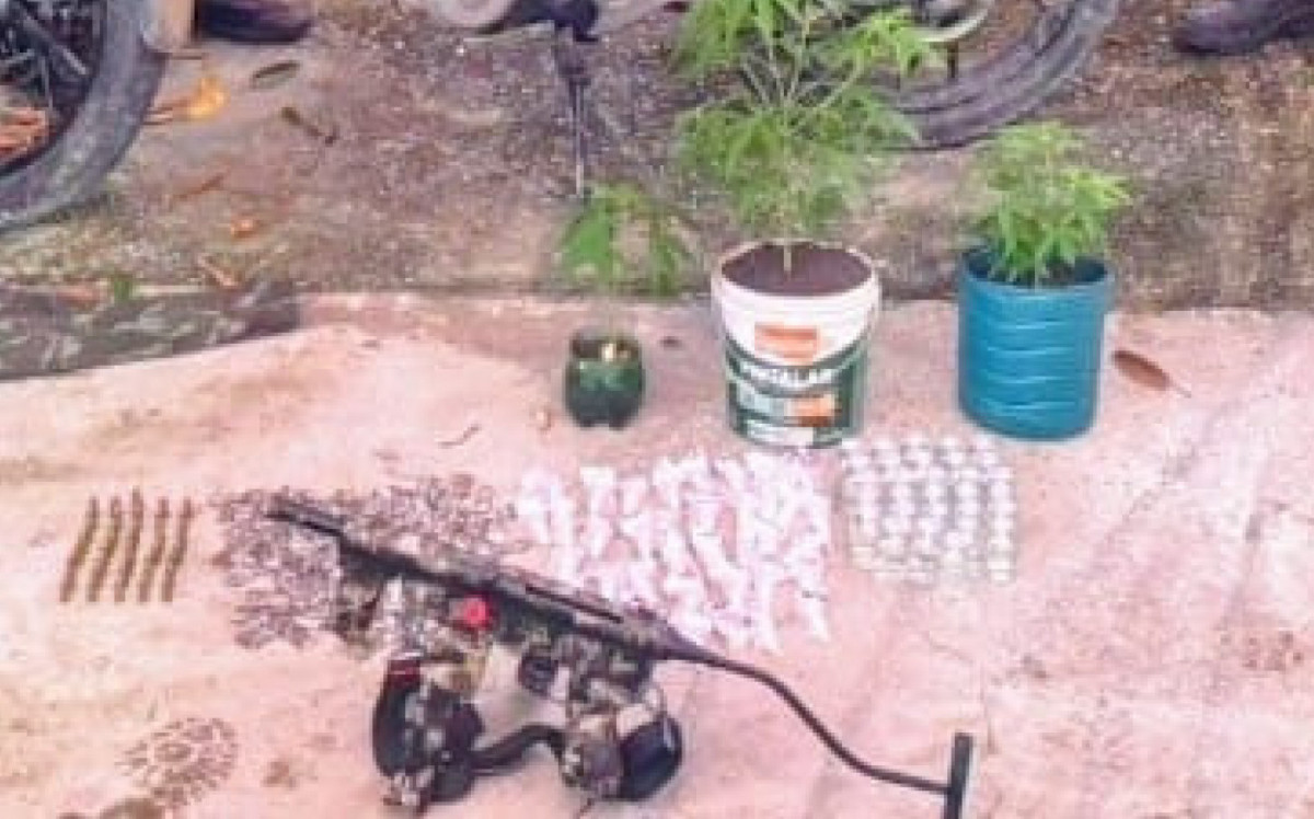 A ação policial teve início após a denúncia de atividade armada na região. Os policiais realizaram buscas no bairro e encontraram os homens no interior do imóvel, com o material ilícito e a motocicleta de origem ilícita.