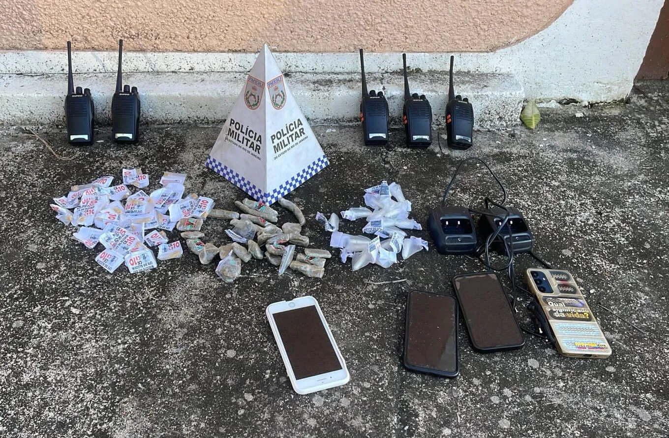 Com base em denúncias, equipes policiais se deslocaram ao local para averiguar a situação. Durante as buscas, os agentes abordaram um grupo na proximidade do endereço indicado. Com os suspeitos, foram apreendidos diversos materiais relacionados ao tráfico. Entre os itens encontrados estavam aproximadamente 50 papelotes de crack, 20 de cocaína, além de 30 invólucros de maconha. Também foram recolhidos dinheiro em espécie, rádios transmissores e celulares utilizados possivelmente na comunicação entre os envolvidos.