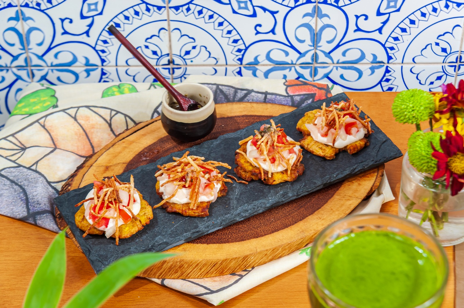 A chef venezuelana Massiel traz patacones — rodelas de banana-da-terra fritas, acompanhadas de molhos tradicionais — como entrada; Hallaca vegana, recheada com tempeh e seu tradicional envoltório de folha de bananeira, como prato principal; e Dulce de Lechosa, doce feito com mamão verde, rapadura, cravo e canela, na sobremesa.