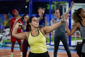 Alba Amaral, gonçalense de 51 anos, que é formada em Educação Física, afirmou estar há cerca de 30 anos sem praticar tênis. Ela expressou entusiasmo com a oportunidade de retomar o esporte de forma acessível, destacando a importância de democratizar o acesso ao tênis, que frequentemente apresenta custos elevados. Segundo ela, a experiência está sendo muito positiva e acredita que mais pessoas irão gostar.
