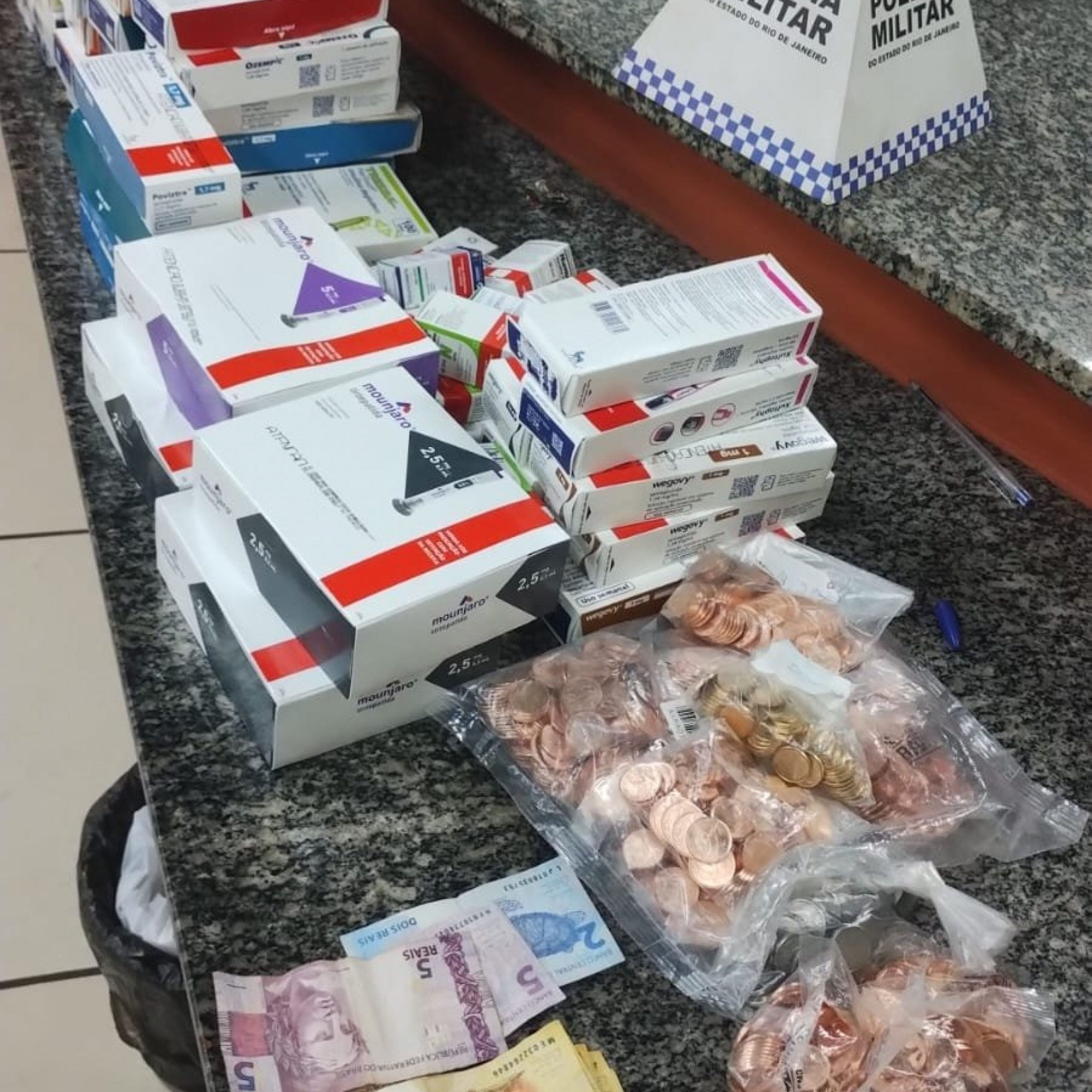 Com os detidos, foram apreendidos uma pistola de brinquedo, um facão, um estilete, um relógio, quatro celulares e 69 unidades de medicamentos utilizados para emagrecimento, incluindo Mounjaro e Ozempic. O veículo, os objetos e os suspeitos foram encaminhados à 15ª Delegacia de Polícia de Gávea para as providências cabíveis.